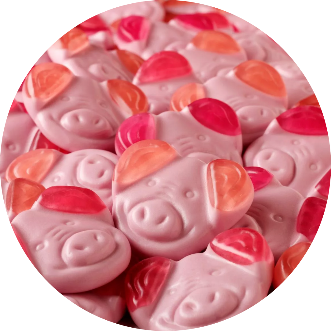 Découvrez les délicieux bonbons Fred le Cochon, une gourmandise 100% vegan à base de sucre mousseux et de gomme aux fruits ! Leur saveur est à la fois délicieuse et incroyablement fruitée. Disponibles en trois variétés magnifiques, les petites oreilles roses de ces bonbons offrent des goûts exquis de fraise, de cerise ou de framboise !