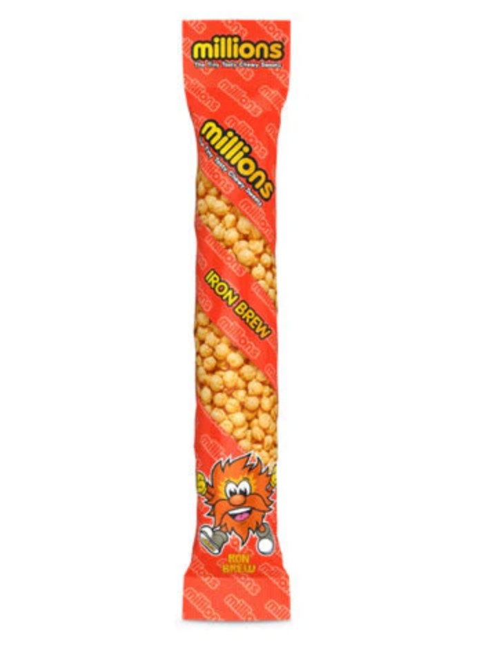 Cap sur le Royaume-Uni avec les Millions Iron Brew, les petites billes au goût de la mythique boisson écossaise Iron Brew ! 🧃