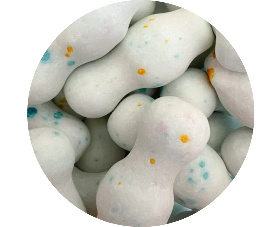 La Mammouth Tétine réunit 5 goûts fruits rouges successifs : Fraise , Framboise, groseille, cassis, fraise des bois, puis bubble gum Tutti Frutti fourré poudre acidulé.
